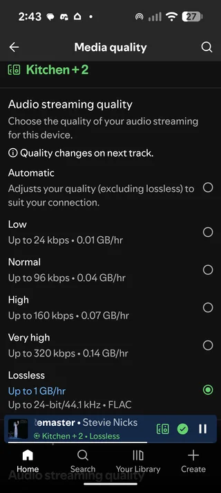 Getting lossless to work on Sonos requires a few steps, according to user reports. You’ll need to connect to a Sonos speaker through Spotify Connect first, then change the media quality setting to lossless within the Spotify app.