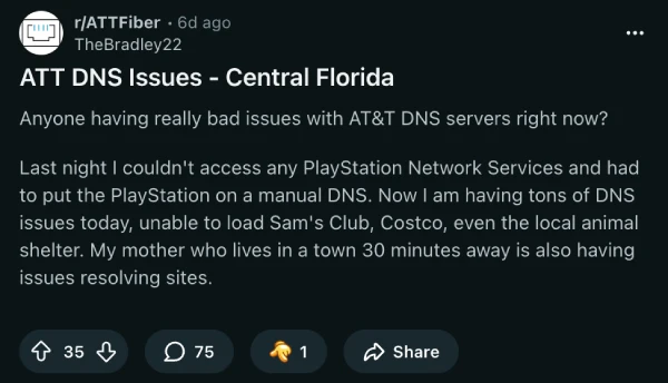 The complaints started rolling in about six days ago from Central Florida, but quickly spread to Atlanta, North Carolina, Tennessee, Louisiana, Texas, and the Dallas-Fort Worth area. One user who kick-started the discussion last week noted that they were unable to access major retailers like Sam’s Club and Costco. Plus, they couldn’t connect to PlayStation Network services.