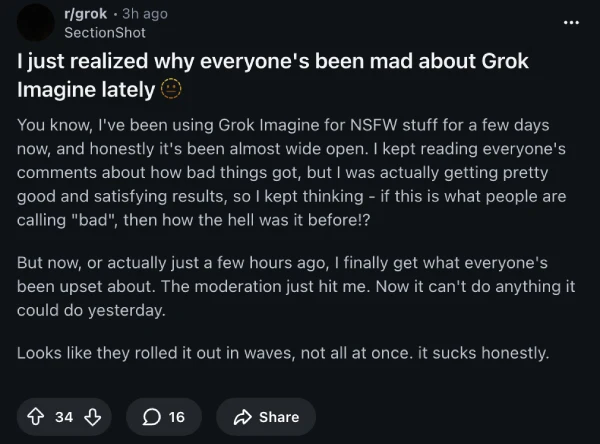 If you’ve been using Grok to create spicy content from uploaded images, you probably noticed something broke over the past day or two. What used to slide through moderation without issue is now getting flagged left and right, and users are pretty pissed about it.