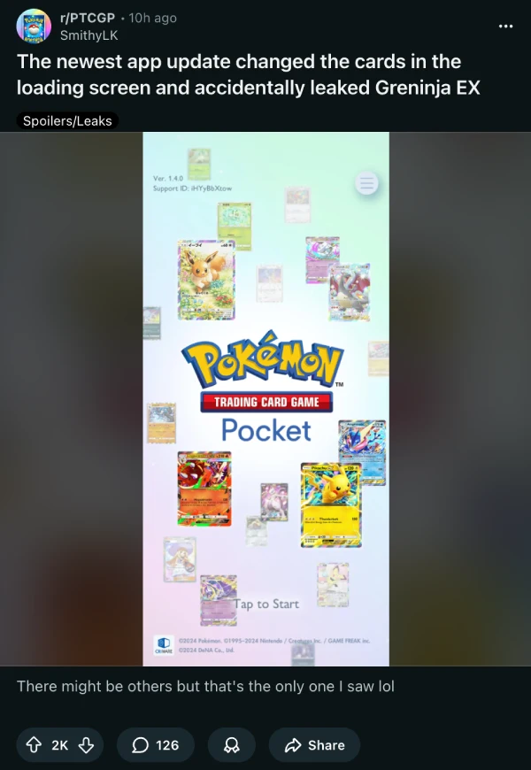 Players booting up Pokémon TCG Pocket after the latest update got more than they bargained for. The new loading screen accidentally revealed Greninja EX, an unreleased card that wasn’t supposed to show up until the Mega Rising expansion drops a few hours from now.