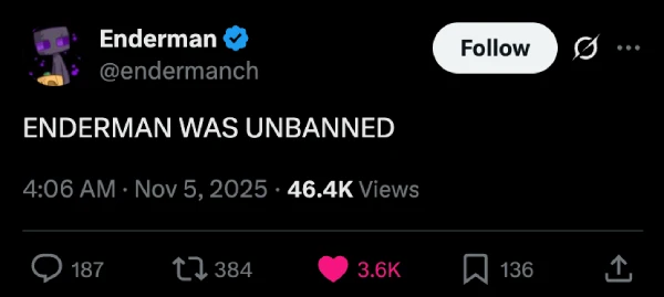 “This is the end of the line,” Enderman said in a farewell video posted shortly before his main channel vanished entirely. “My channel is soon to be terminated because my first channel is linked to my secondary channel.” That video, originally posted to YouTube, has since disappeared along with his entire account. A backup remains on Odysee, an alternative video platform.