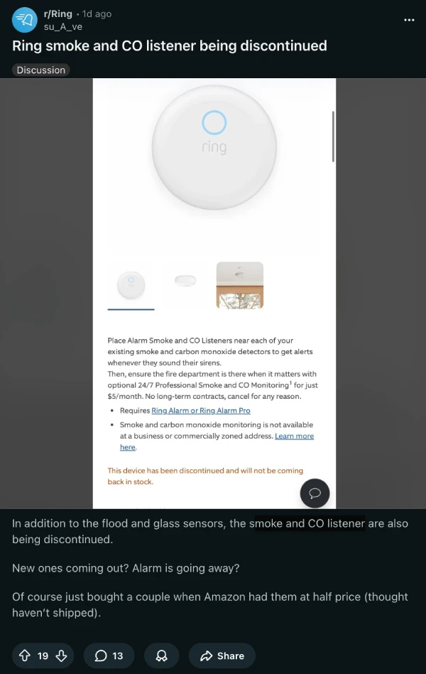 Update 10/12/25 – 10:35 am (IST): It seems the glass break and flood & freeze sensors aren’t the only products being discontinued. A post on Reddit has put the spotlight on the Smoke and CO Listeners, which have also been marked as being discontinued.