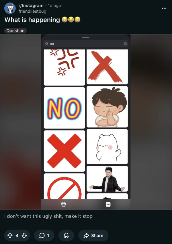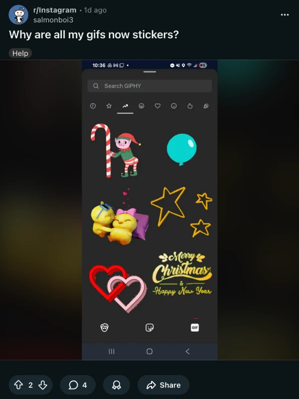 Another user complained, “Why are all my gifs now stickers?”, while others noted the selection has “completely devolved”. Instead of the vast GIPHY library of pop culture moments, users are seeing a limited set of bland, cartoonish animations.