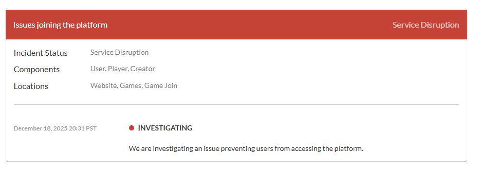 Roblox’s server status page has been updated with an acknowledgement, noting that the issue is under investigation.